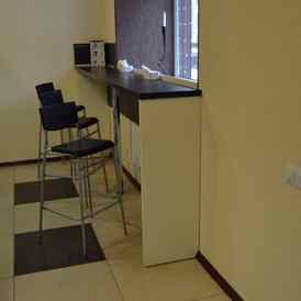 «КофеЭра» оформлена в традиционном для кофеен стиле. Коричнево-бежевое сочетание оттенков, натуральное дерево, урбанистические люстры, меловые доски и аромат кофе — главные составляющие уютной атмосферы заведения.