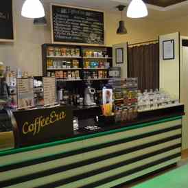 «КофеЭра» — магазин-кофейня, где можно не только выпить чашку любимого напитка, но приобрести понравившиеся сорта кофе и чая для дома и офиса. В ассортименте представлен богатый выбор как популярных брендов мировых производителей, так и отечественных марок. Это Lavazza, Poli, Barista, Nero Aroma, BLASERCAFE и другие, а также различные сорта чая с многообразием вкусовых оттенков. Кофе и чай здесь подаются в одноразовой посуде.